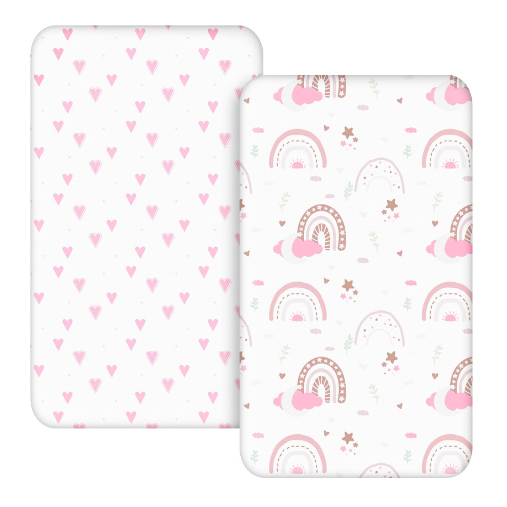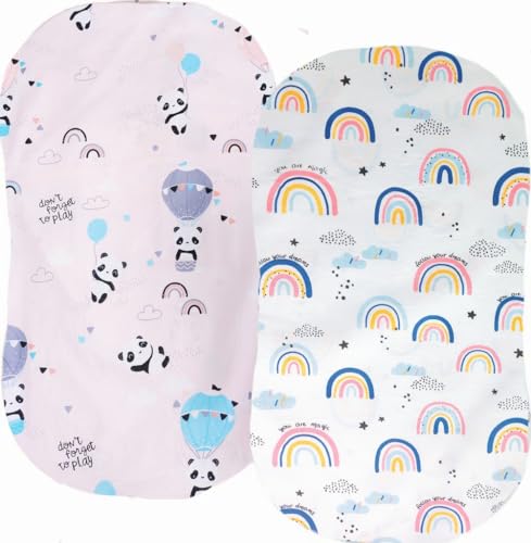 Peepeemax Moses Basket Sheets 80x40 cm, 100% Cotton Pram Sheets Fitted, Muslin Bassinet Sheet for Boys and Girls, Baby Crib Fitted Sheets Fit for Oval Rectangle Matress, 2 Pack (Rainbow)