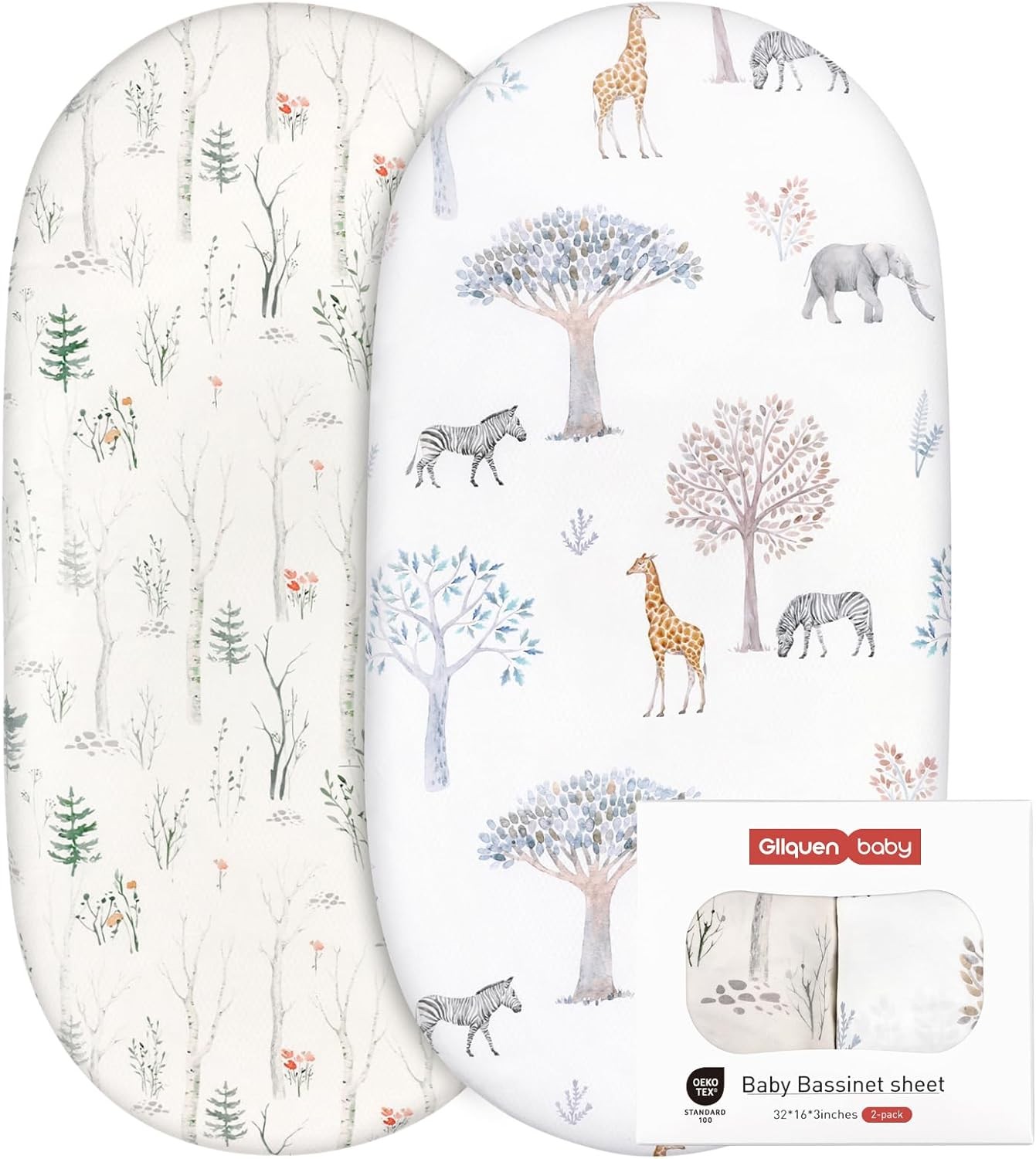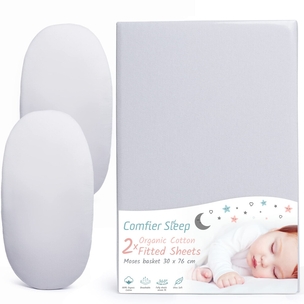 Moses Basket Sheets 82X41cm, Baby Bassinet Sheets Pram Sheet Fitted for Boy and Girl, Crib Fitted Sheets Oeko-tex100 Fit for Oval, Hourglass &