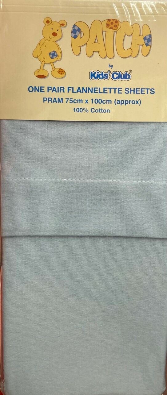 Pack of 2 Baby Pram Flannelette Sheets Blue - Baby Boy Bedding Gift
