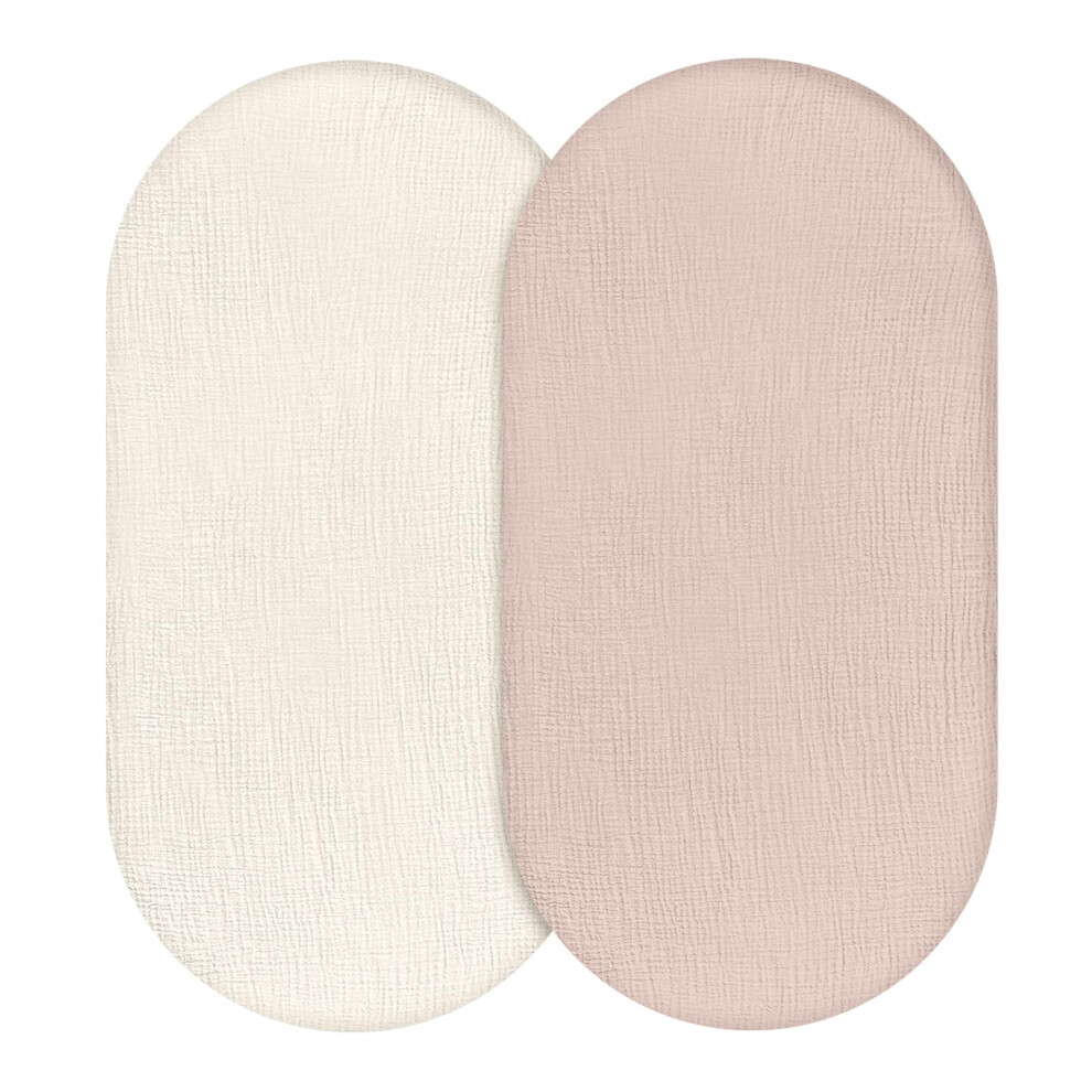 Peepeemax Moses Basket Sheets 80x40 cm, 100% Cotton Pram Sheets Fitted, Muslin Bassinet Sheet for Boys and Girls, Baby Crib Fitted Sheets Fit for Oval Rectangle Matress, 2 Pack (Pink)