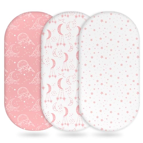 Unnivoll Moses Basket Sheets 3 Pack, Newborn Pram Sheet Fitted for Baby Boy and Girl, Super Soft & Breathable Crib Baby Bassinet Sheet Easy Care White Pink Moon