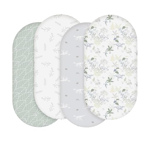 Moses Basket Sheets 82X41cm, Baby Bassinet Sheets Pram Sheet Fitted for Boy and Girl, Crib Fitted Sheets Oeko-tex100 Fit for Oval, Hourglass & Rectangle Bassinet 4 Packs Multicolors
