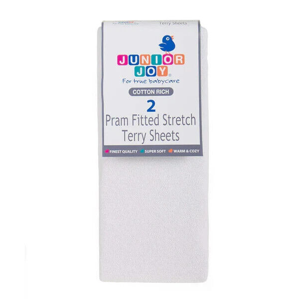 Pack of 2 Junior Joy White Pram Terry Fitted Sheets 100% 50x80cm