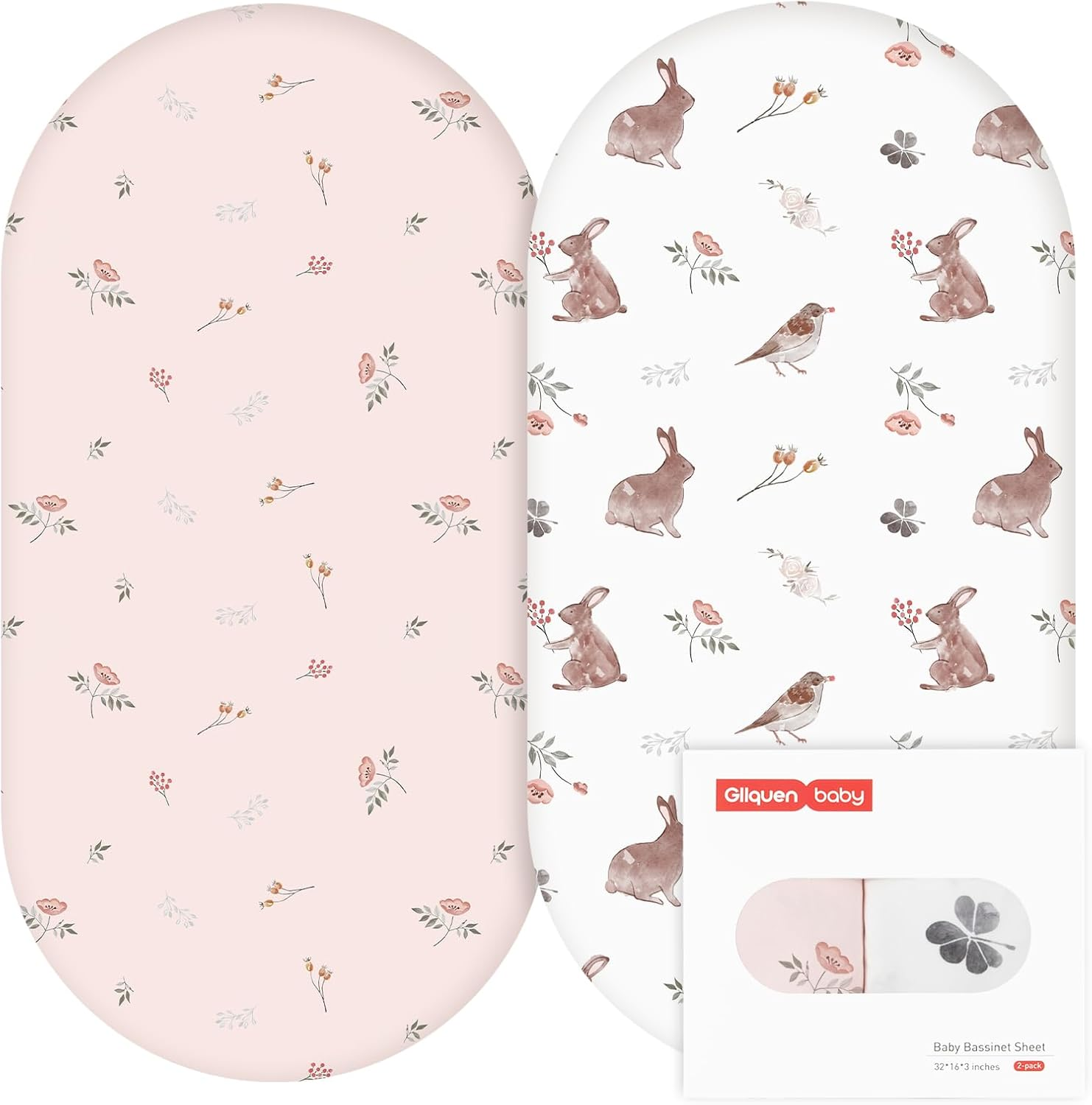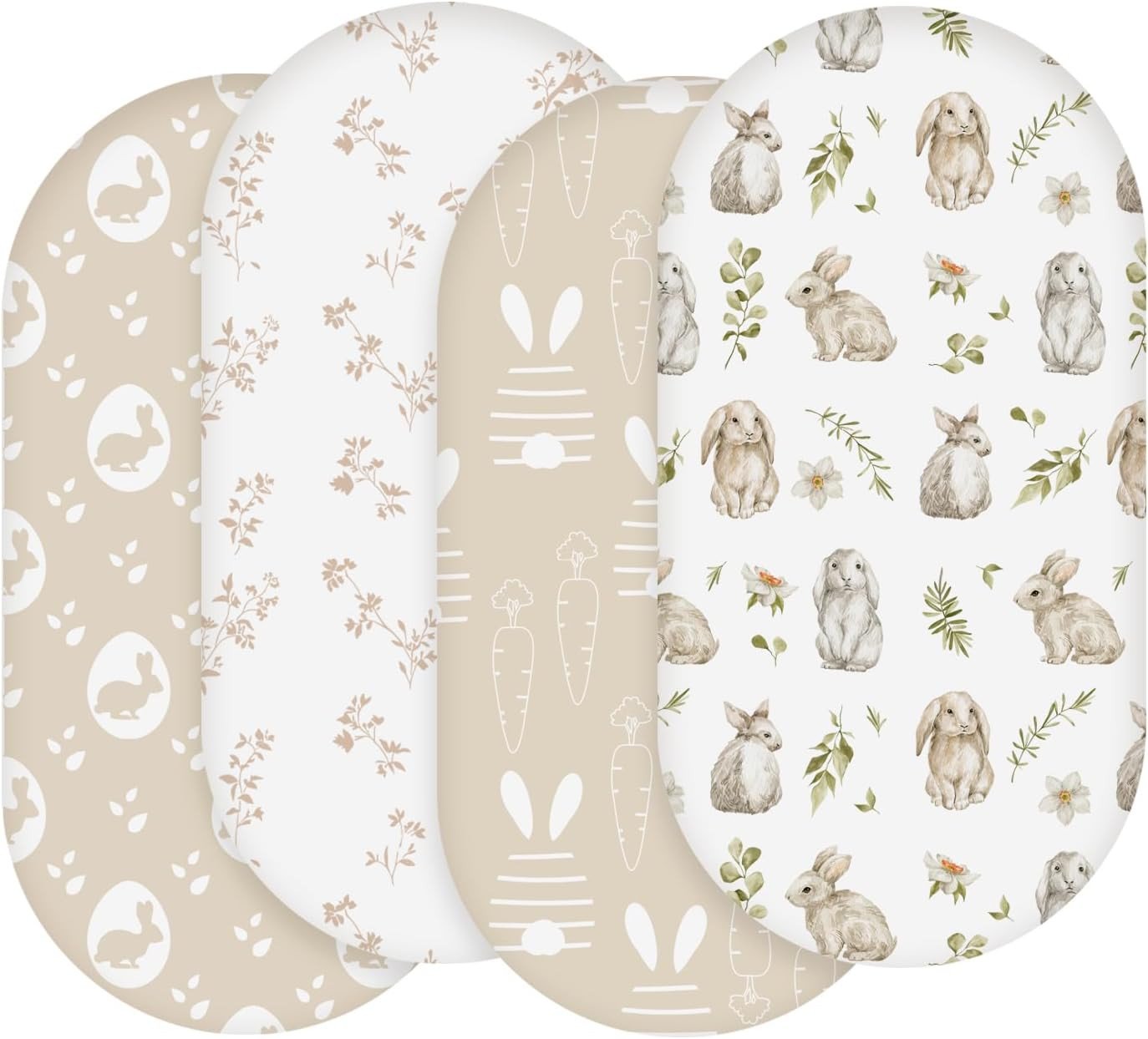 Moses Basket Sheets 82 * 41cm, Baby Bassinet Sheets Pram Sheet Fitted for Boy and Girl, Crib Fitted Sheets Oeko-tex100 Fit for Oval, Hourglass & Rectangle Bassinet 4 Packs Rabbit Style