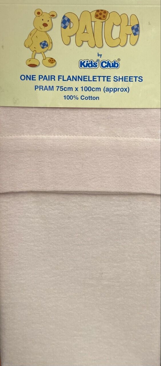 Pram Flannelette Sheets Pink One Pair 100% Cotton 75cm x 100cm Flat Sheets