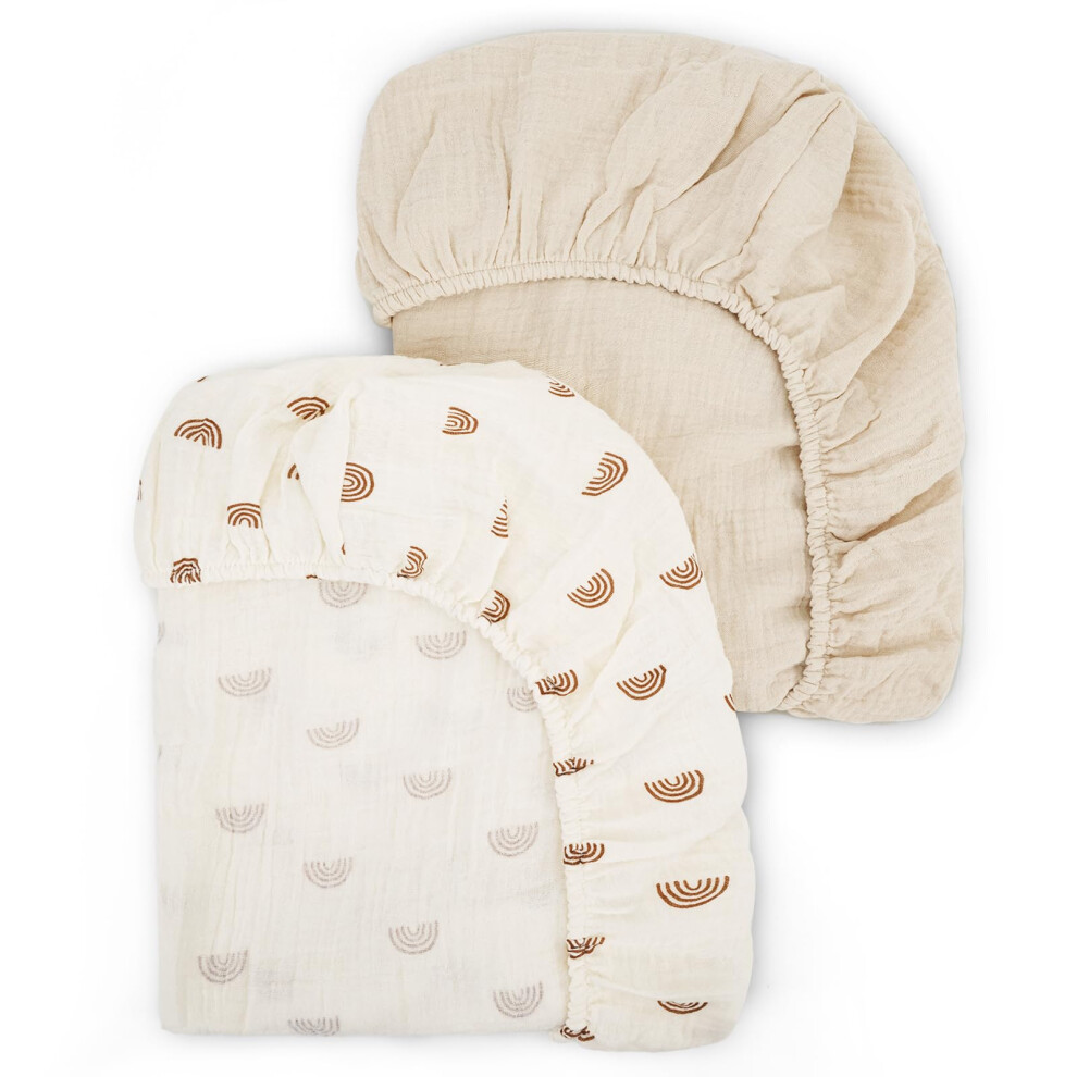 Set of 2 Muslin Cotton Fitted Sheets: Pram Bed Sheet Bassinet Mattress Cover for Baby Cot and Extra Cot 90 x 40 cm (Cream Sand)