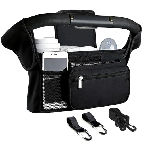 Stroller Organizer Pram Bag - Pram Pushchair Organizer Bag Buggys Organiser Mummy Shoulder Bag Hanging Stroller Bag | Diaper Storage, Secure Straps, Detachable Bag, Pockets for Phone, Keys, Kumprohu