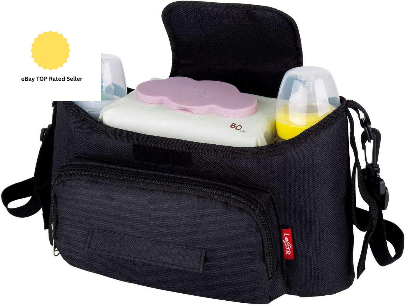 Baby Pram Organiser Stroller Storage Bag Portable Hanging Pushchair Diaper Bag Extra-Large Capacity Black Bear Outdoor