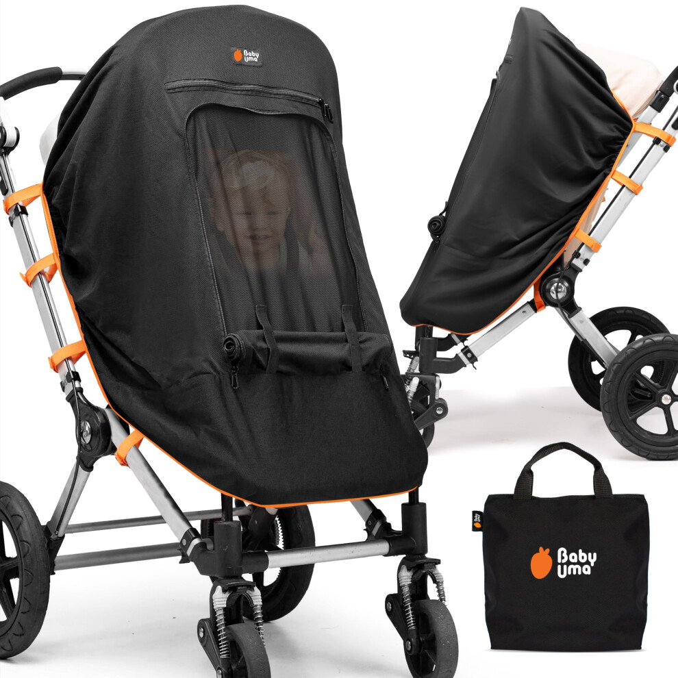 Baby Uma Pram Sun Shade - UPF 50+ Pram Shade, Sun Shade for Pram, Breathable Blackout Mesh Pram Parasol, Parasol for Pram with Zip-up Window, 6+