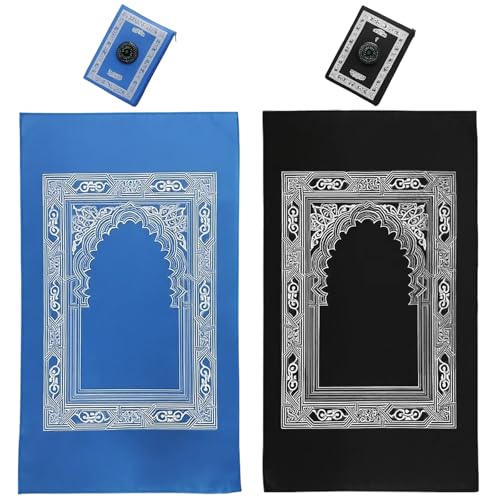 2-Pack, Prayer Mat, 60 x 100cm, Memory Foam Mats with Portable Design, Travel Mat for Umrah Essentials, Prayer Mats (Black, Blue), People with a Habit of Praying
