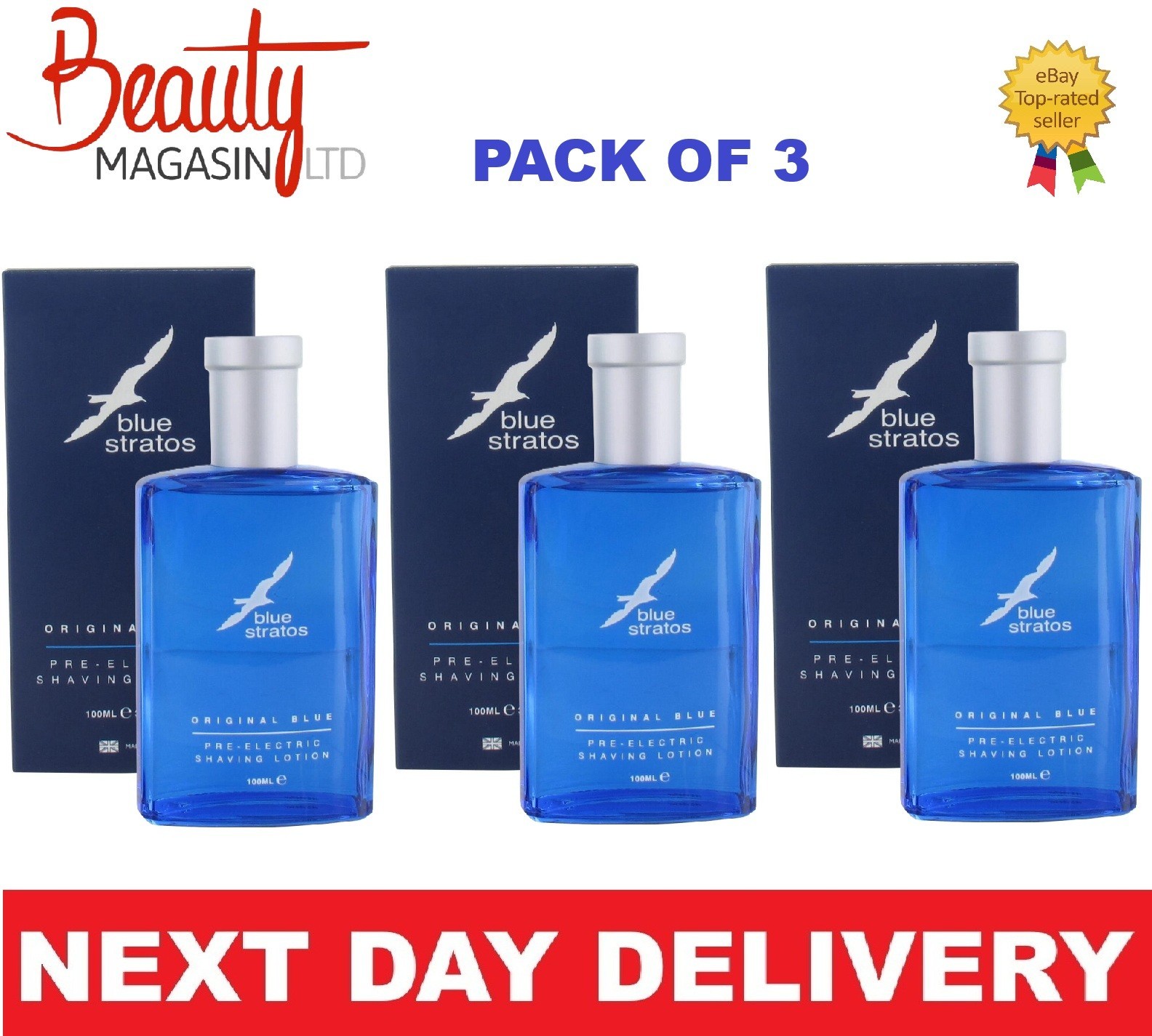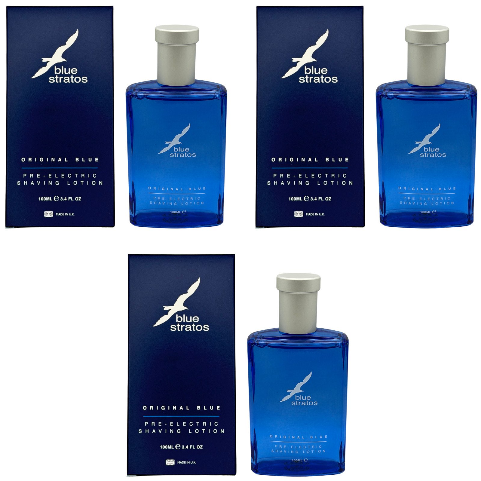 3x Blue Stratos Original Blue Pre Electric Shaving Lotion For Men 100ml
