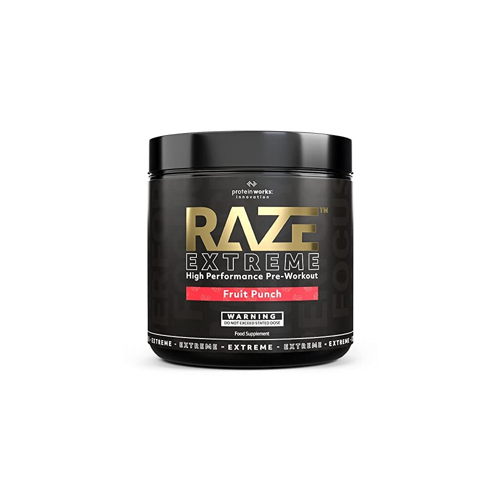 Raze Extreme Pre Workout Powder Creatine Caffeine Beta Alanine Energy Drink Fruit Punch 30 servings