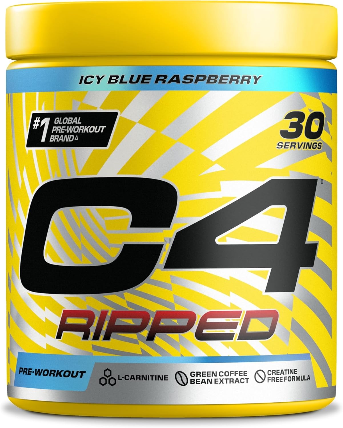 C4 Ripped Pre Workout Powder ICY Blue Raspberry 30 Servings | Zero Sugar Pre Workout with 150mg Caffeine, 500mg L Carnitine, 1600mg Beta Alanine, 200mg Green Coffee Bean Extract