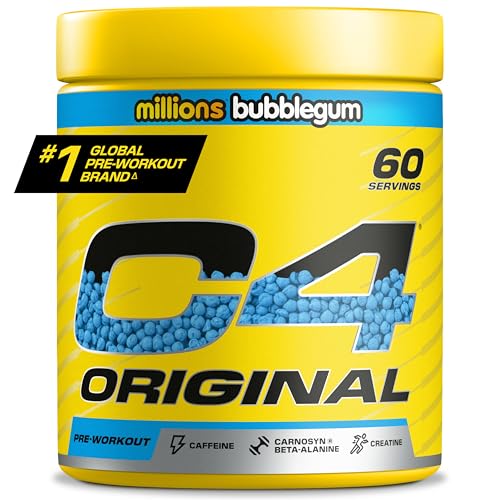 C4 Original Pre Workout Powder, Bubblegum, 60 Servings | Zero Sugar Pre Workout Energy Drink Powder with 150mg Caffeine, 1500mg Creatine Monohydrate, 1600mg Beta Alanine