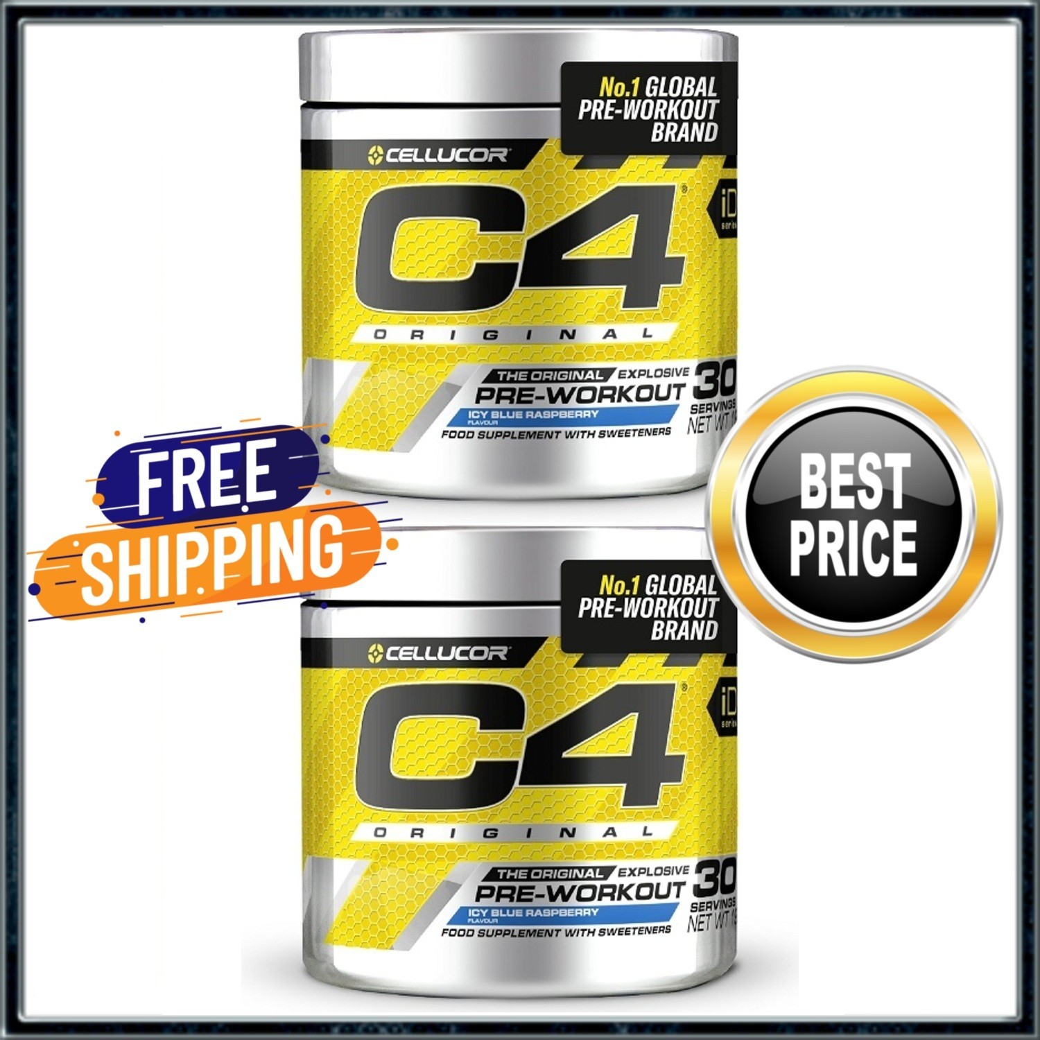 C4 Original Pre-Workout Powder – 2 × 30 Servings Icy Blue Raspberry Energy Focus