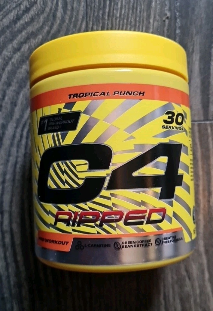 C4 Ripped Pre Workout Powder Tropical Punch 30 Servings | | Zero Sugar Pre Workout with 150mg Caffeine, 500mg L Carnitine, 1600mg Beta Alanine, 200mg Green Coffee Bean Extract