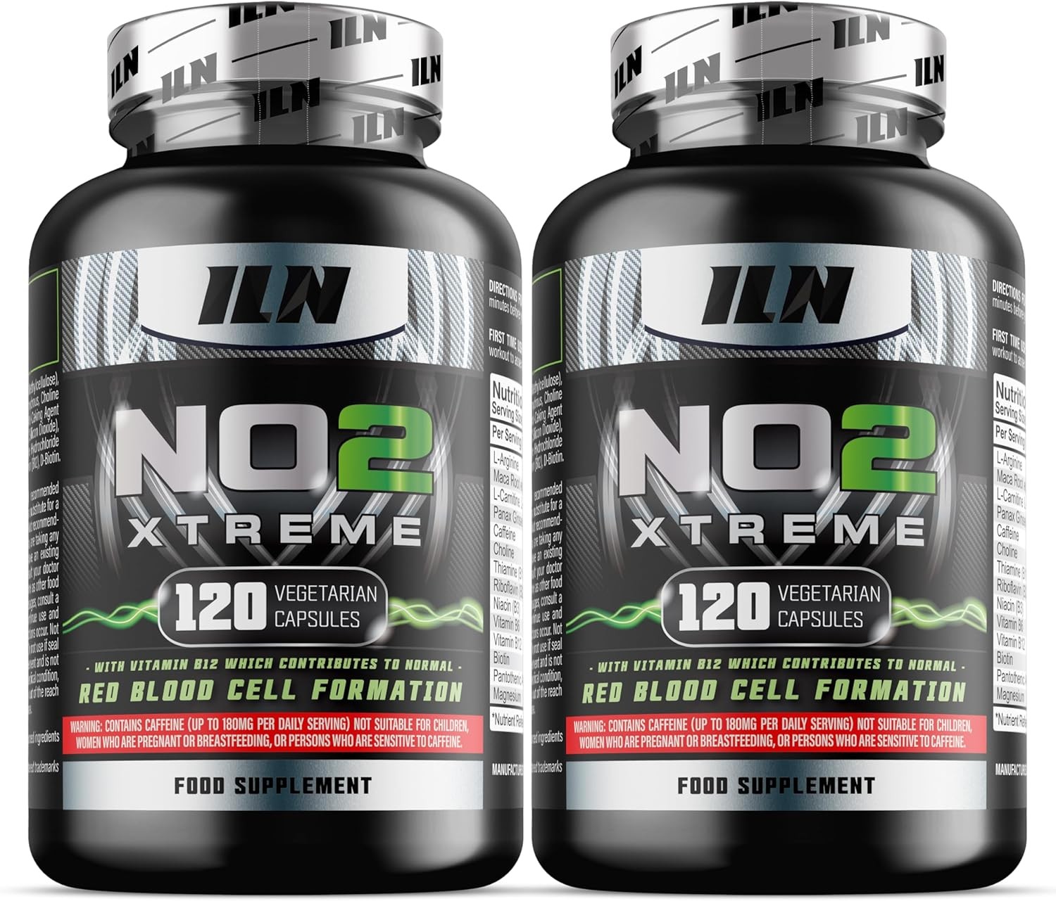 NO2 Xtreme - Nitric Oxide Supplement - Pump Pre Workout Tablets - with L Arginine, Niacin and Caffeine - Vegetarian &