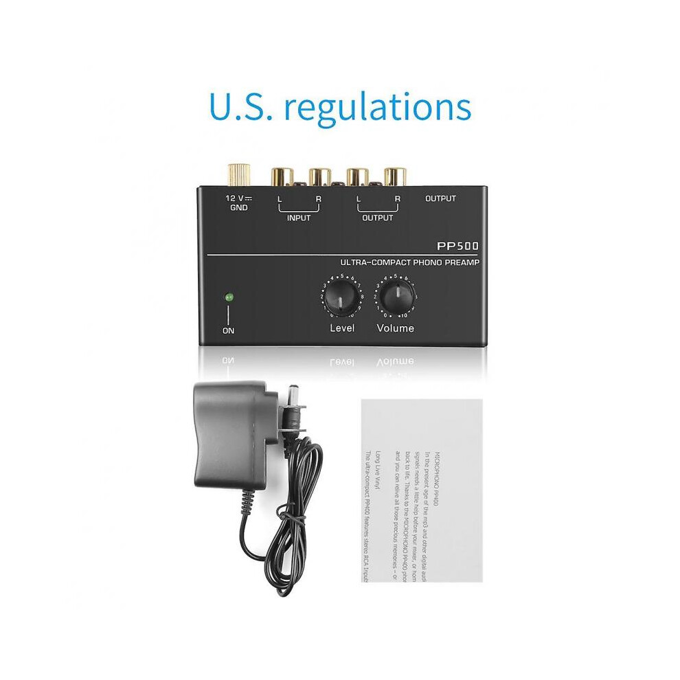 (US Plug) PP500 Ultra-compact Phono Preamp pre Amp Preamplifier with Level Volume Control RCA Input Output 1/4" TRS Output Interfaces for LP Vinyl Tur