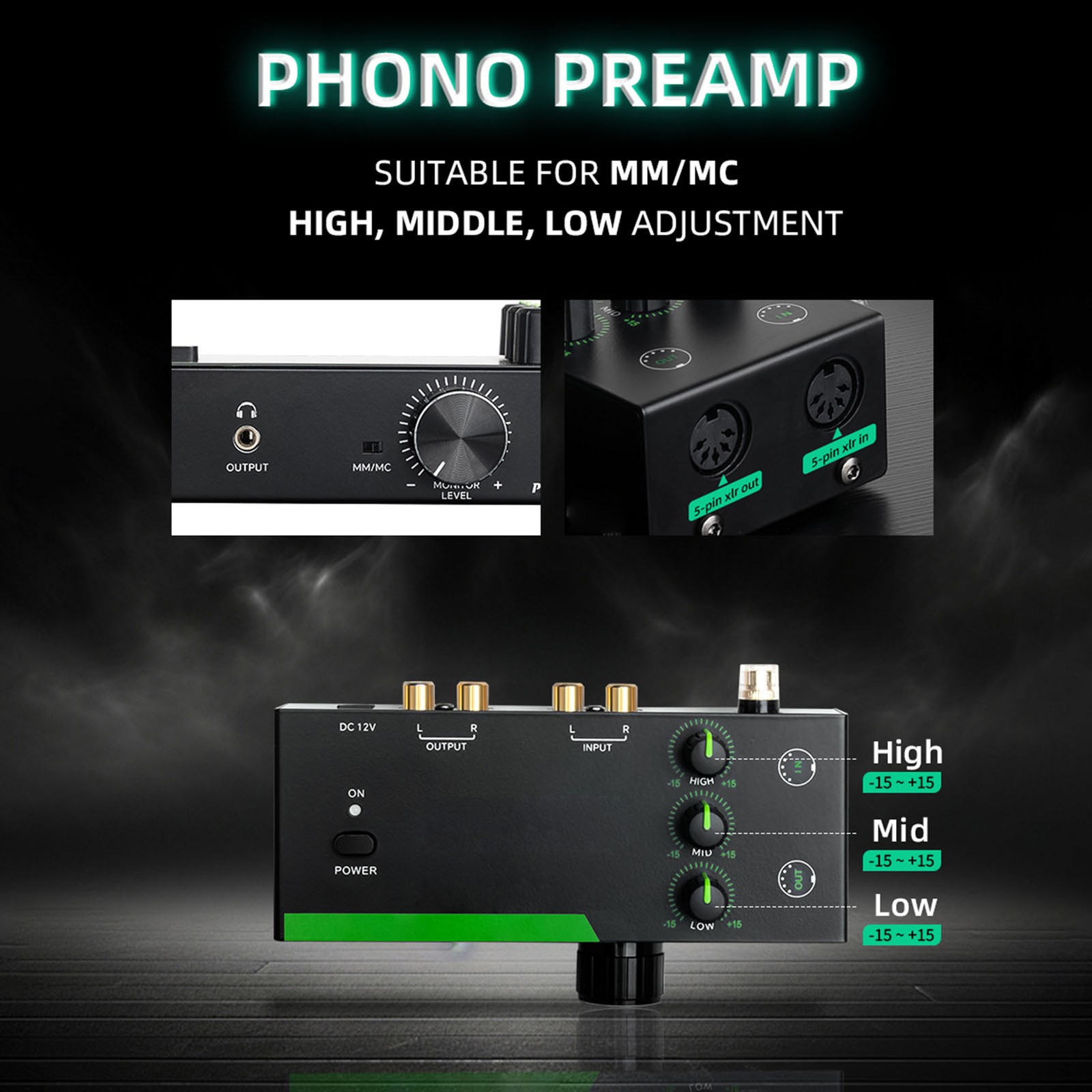M/M Phono Preamp With Power Switch Ultra-compact Preamplifier With Level & V BAJ