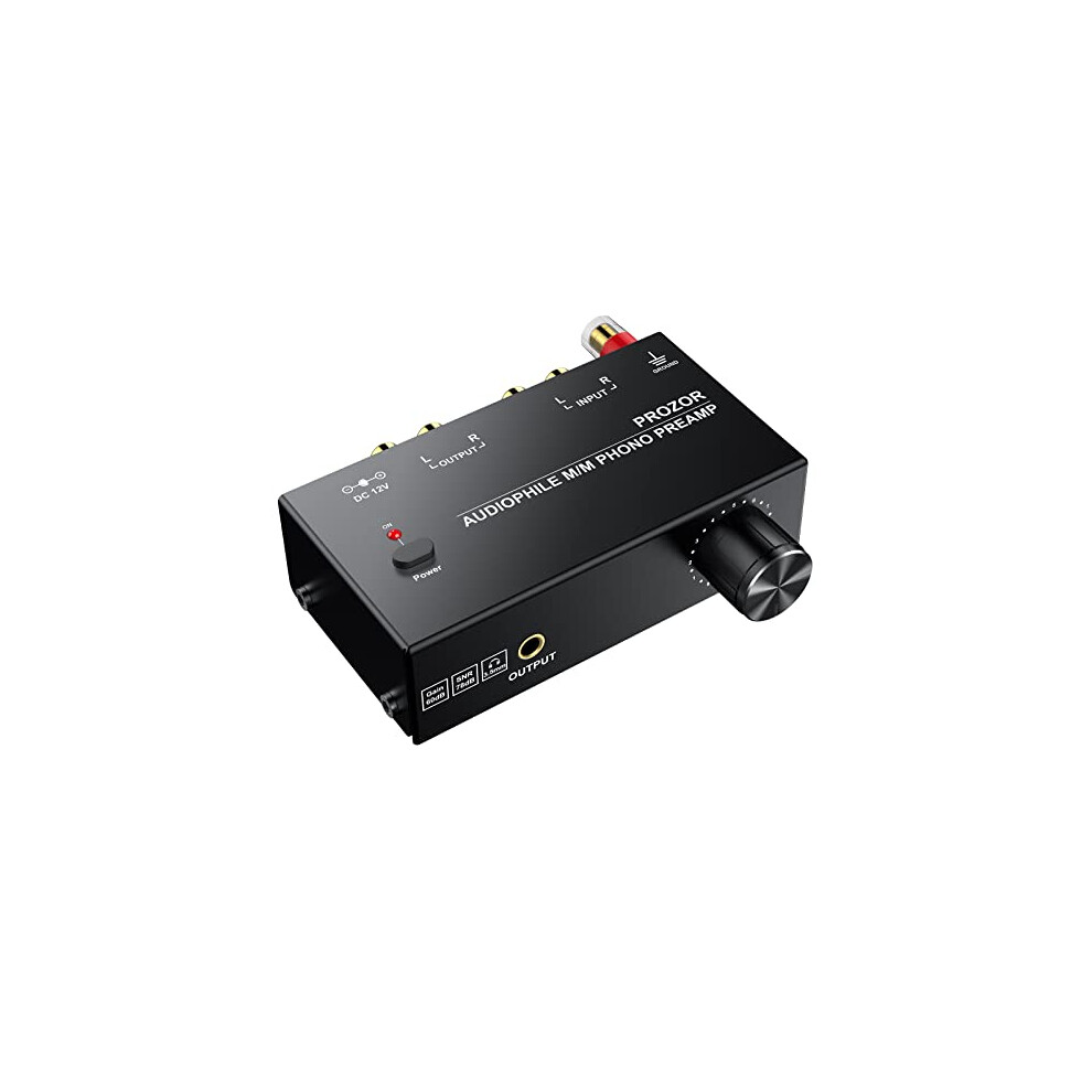 PROZOR Phono Preamplifier for Turntable with Level Control Audio Stereo M/M Phono Preamp RCA Input & Output 3.5mm Output Turntable Preamp with 12V 1A