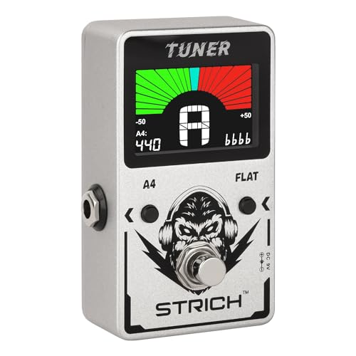 STRICH Tuner Guitar Pedal with Large Color Screen, Precision Chromatic Drop Tuning, 430-450Hz A4, True Bypass for Electric Guitar & Bass, Silver
