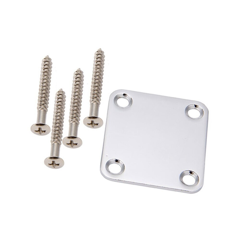1 Set Electric Guitar Neck Plate with Screws for Strat Tele Guitar Precision,Jazz Bass Replacement, Chrome