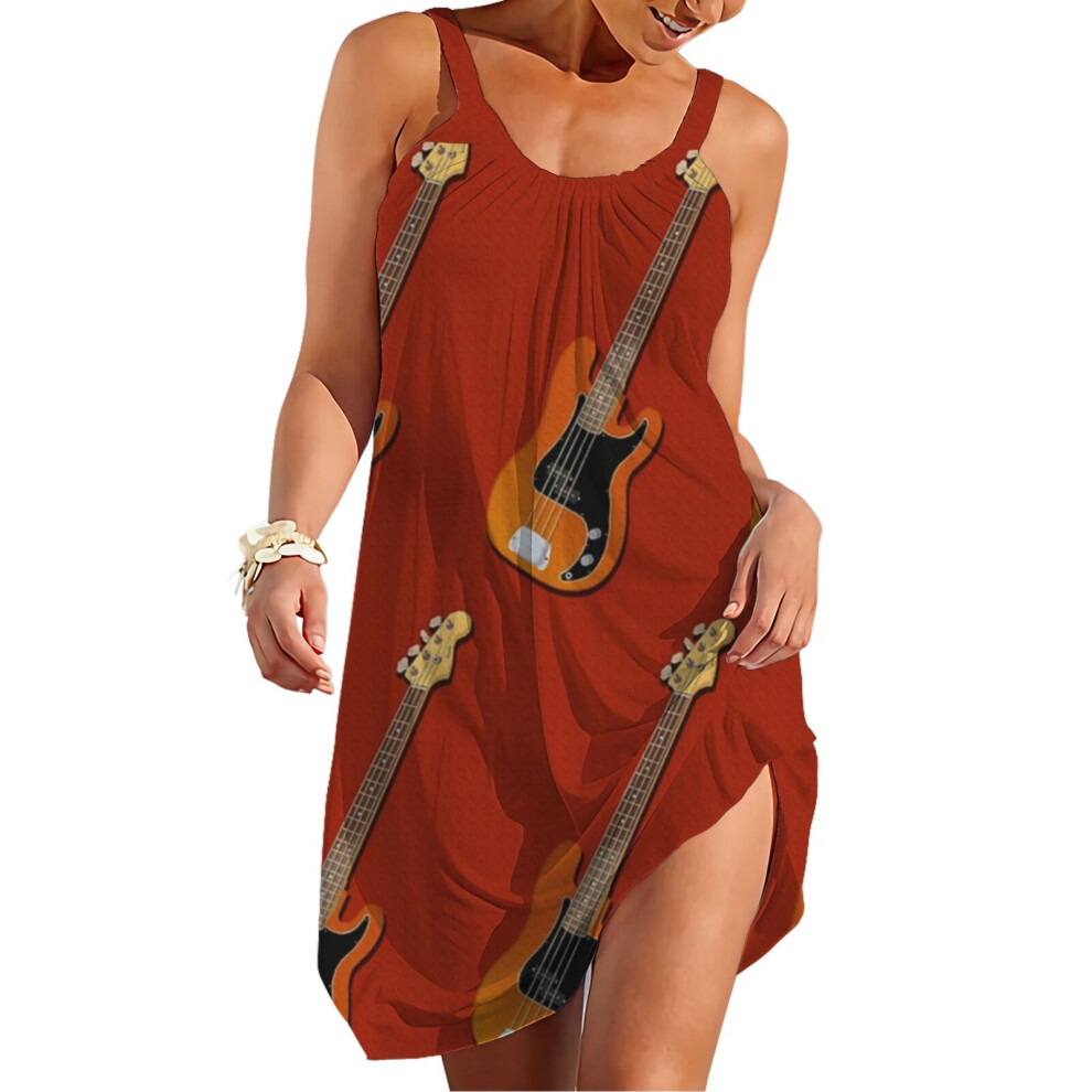 (Custom Precision Bass Guitar_11731) Women's Summer Dresses Casual Sleeveless Elastic Skirt with Straps Sundresses Vacation Beach Cover Up Dress Tshir