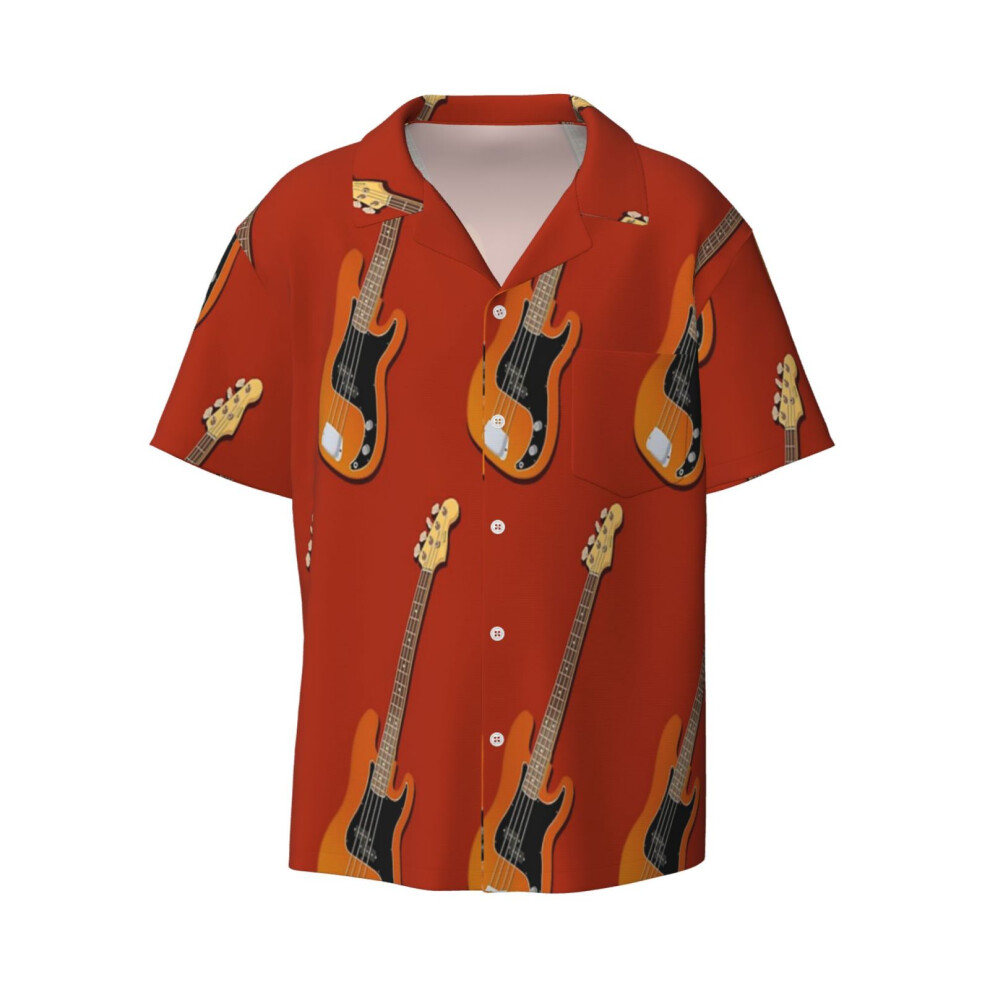 (Custom Precision Bass Guitar_11731) Men's Hawaiian Shirts Cuban Collar Vintage Bowling Short Sleeve Button Down Beach Shirt Casual Summer Vacation We