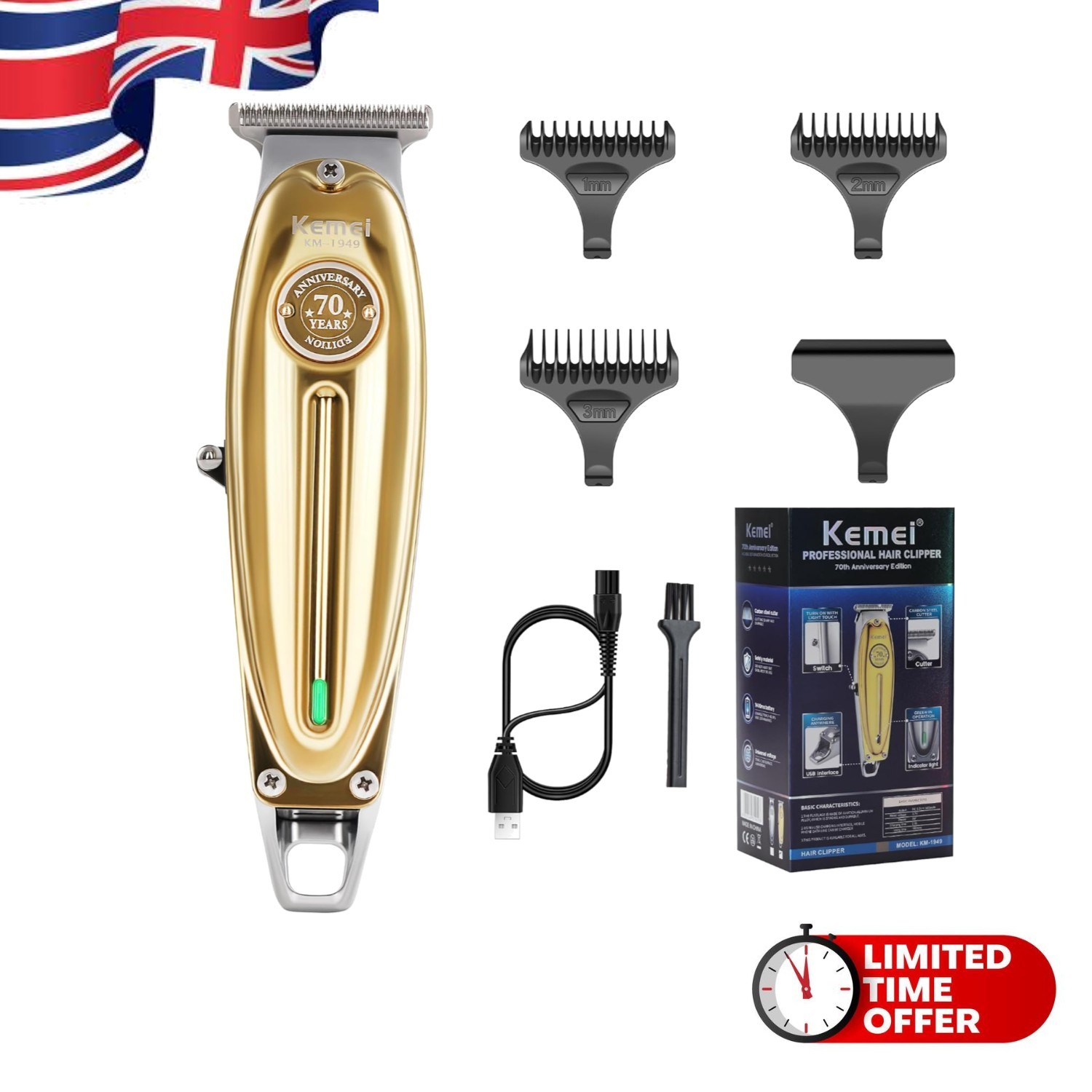 Cordless Gold Hair Clippers for Men with LCD Display, Precision T Blade Beard Trimmer Kit