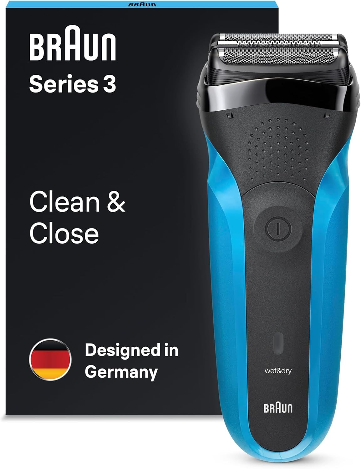 Braun Series 3 Electric Shaver For Men with Precision Beard Trimmer and 5 Combs, Wet & Dry, UK 2 Pin Plug, 310, Black/Blue Razor