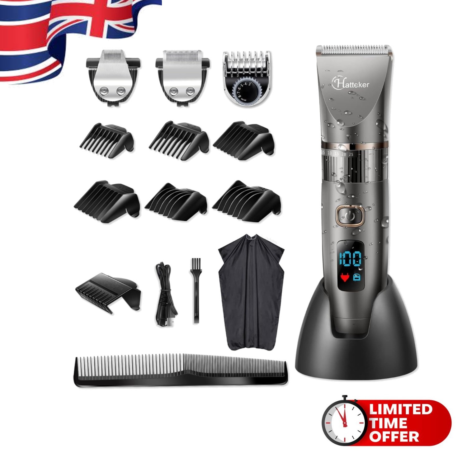 Electric Hair Clipper with Precision Beard Trimmer, Waterproof Alloy Body, Fast Charging, Digital Display