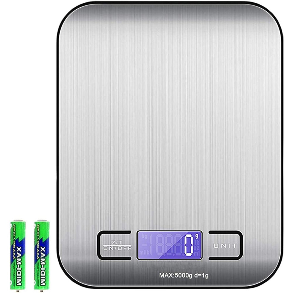 Digital Precision Kitchen Scale, Electronic Kitchen Scale, Tare Function, 5kg / 1g Stainless Steel, Backlit LCD Display, High Precision Home Use Scale