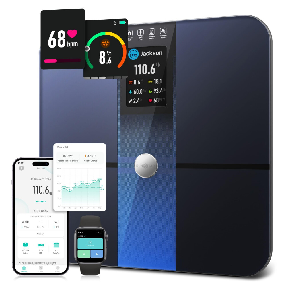 Runstar Smart Scale for Body Weight and Fat Percentage FSA HSA Eligible, 3.5" TFT Color Display High Precision Digital Bathroom Scale BMI Heart Rate