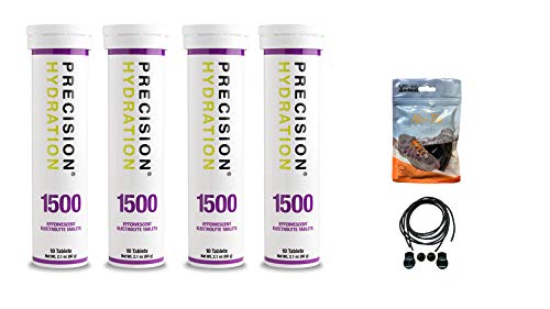 Precision Hydration Electrolyte Tablets - 4 Tubes of 10 x Tabs (1500 Strength). Bundled with a Pack of VPoint Leisure Elastic No-tie Reflective Shoe Laces