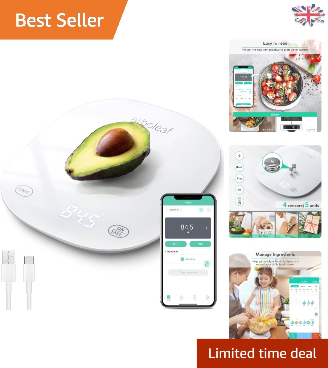 High Precision Smart Kitchen Scales with Tare Function, USB Rechargeable, White