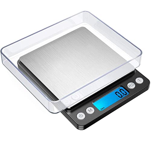 Criacr Digital Kitchen Scales, 3kg High Precision Food Scales with 2 Trays, Stainless Steel Cooking Scale with Back-Lit LCD Display, 0.1g/0.01 oz Precise, Tare and PCS Features, for Food, Coffee