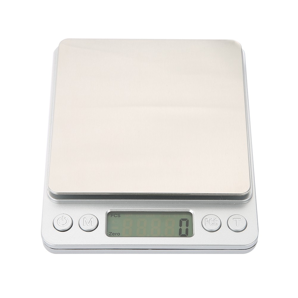 Digital kitchen Scales 3000g / 0.1g High-precision Mini Food Scales with Backlit LCD Display Stainless Steel Multifunctional Scale With 2 Weighing Pans Batteries Included (Silvery, 5kg)