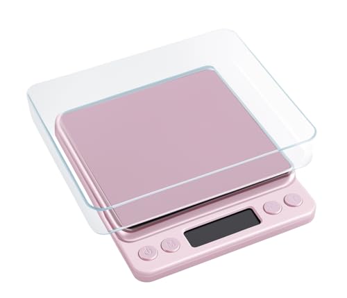 Digital kitchen Scales 3000g / 0.1g High-precision Mini Food Scales with Backlit LCD Display Stainless Steel Multifunctional Scale With 2 Weighing Pans Batteries Included (PINK, 3KG/0.1g)