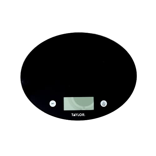 Taylor Digital Kitchen Food Scales with Glass Platform, Highly Accurate with Tare Function and Precision, Extra Large LCD Screen, Black Weighs 5 kg / 5,000 ml Capacity