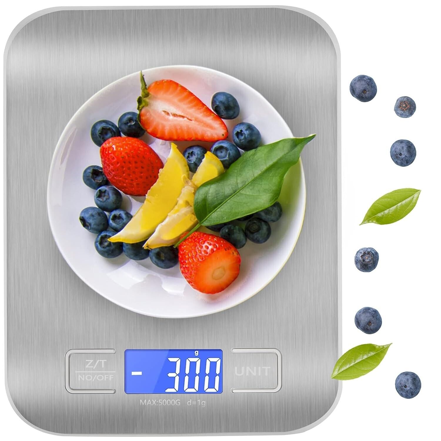 Etekcity Digital Kitchen Scales, Professional Food Weighing Scales with Premium Stainless Steel, Backlit LCD Display, Incredible Precision up to 1 g (5 kg Maximum Weight), Silver
