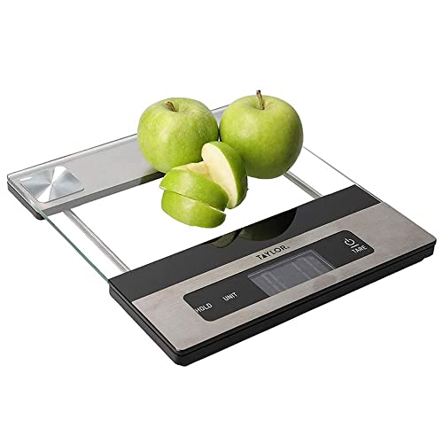 Taylor Digital Kitchen Food Scales with Glass Platform, Highly Accurate with Tare Function and Precision, Stainless Silver, Weighs 5 kg