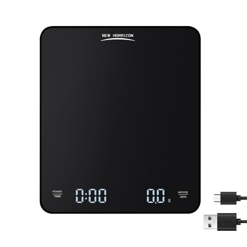 New Horrizon Rechargeable Digital Food Scales, scales kitchen, digital scale, precision scale, 0.1g x 3000g Food Scale LCD display, Coffee Scales