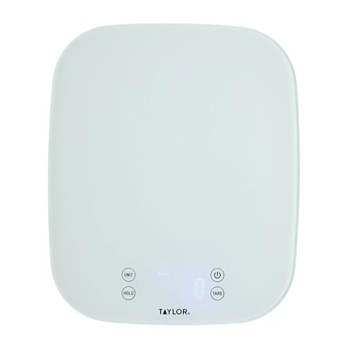 Taylor Pro Digital Kitchen Food Scales, Compact Professional Standard with Precision Accuracy and Waterproof Design with Tare Feature, White Glass, Weighs 14 kg/14 L Capacity