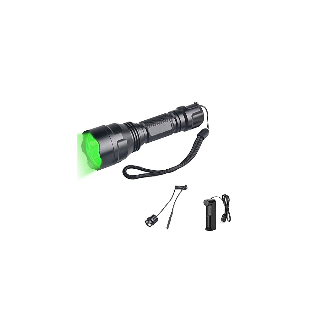 Hunting Torch Green Light, WESLITE 1200 Lumens Green Hunting Torch Rechargeable Tactical Flashlight Waterproof 1 Mode Green Predator Light with