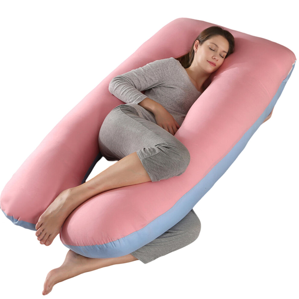 VASSVIO Pregnancy Pillow, U Shaped Maternity Pillow for Sleeping, Machine Washable Maternity & Body Pillows Full Body Support for Back, Legs, Belly, Hips for Pregnant Women 145x70cm (Pink)