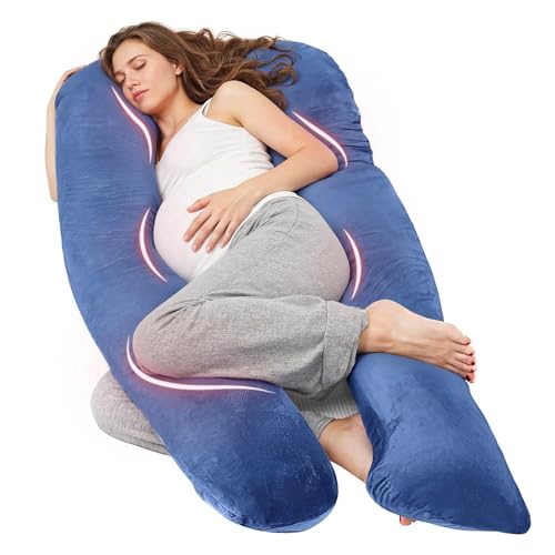 Nuliie Pregnancy Pillow for Sleeping, U Shaped Full Body Pillow Pregnancy Pillows, Maternity Pillow Support for Back, Hips, Legs for Pregnant Women, With Washable Velvet Cover (Navy)