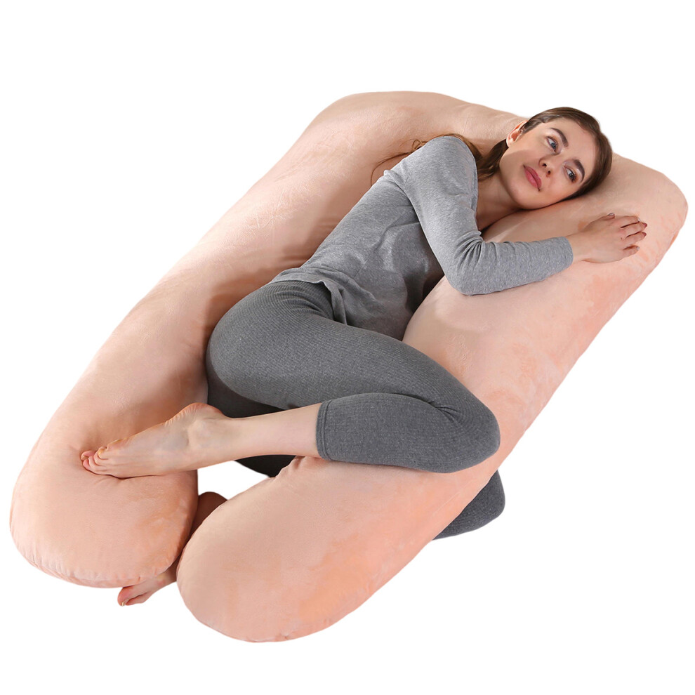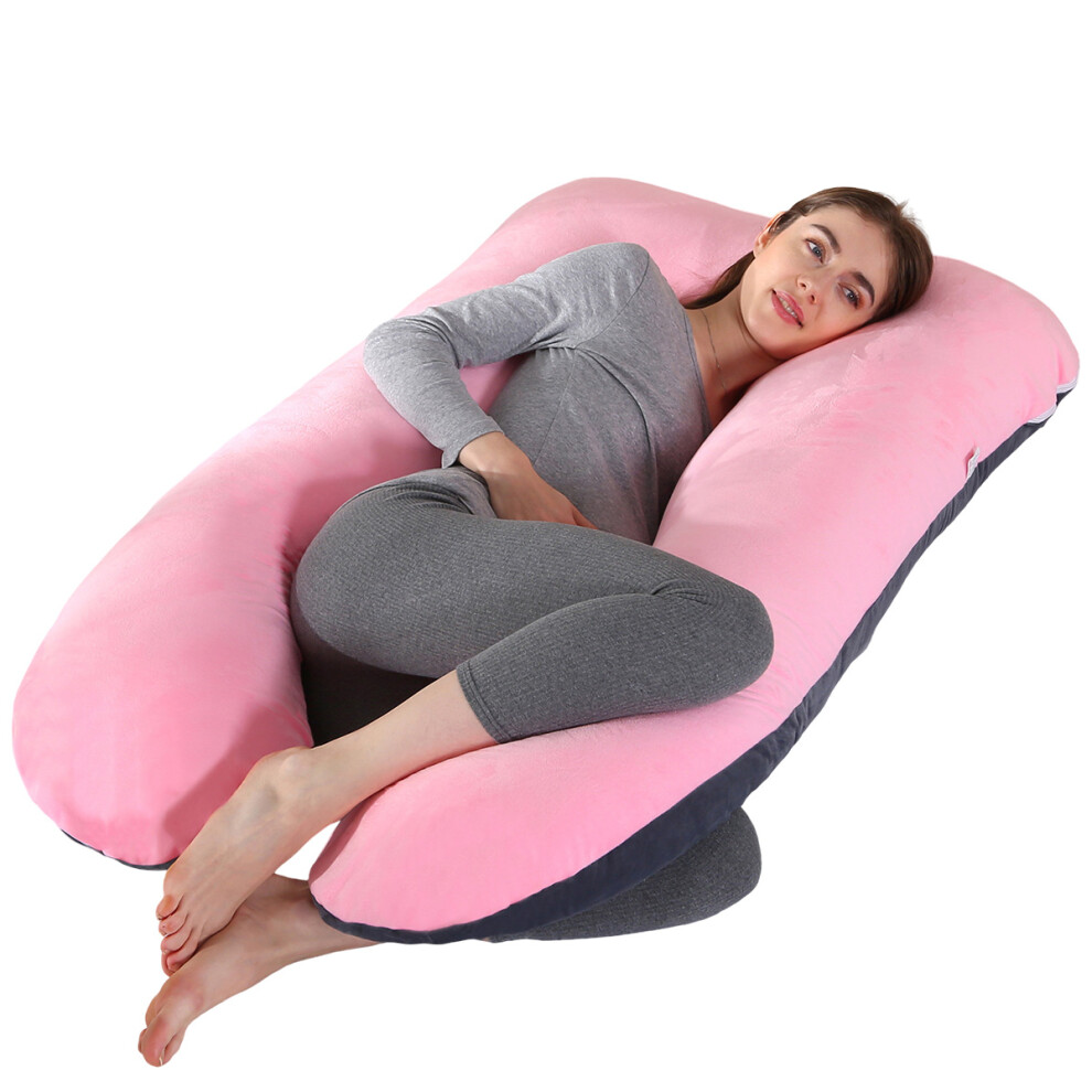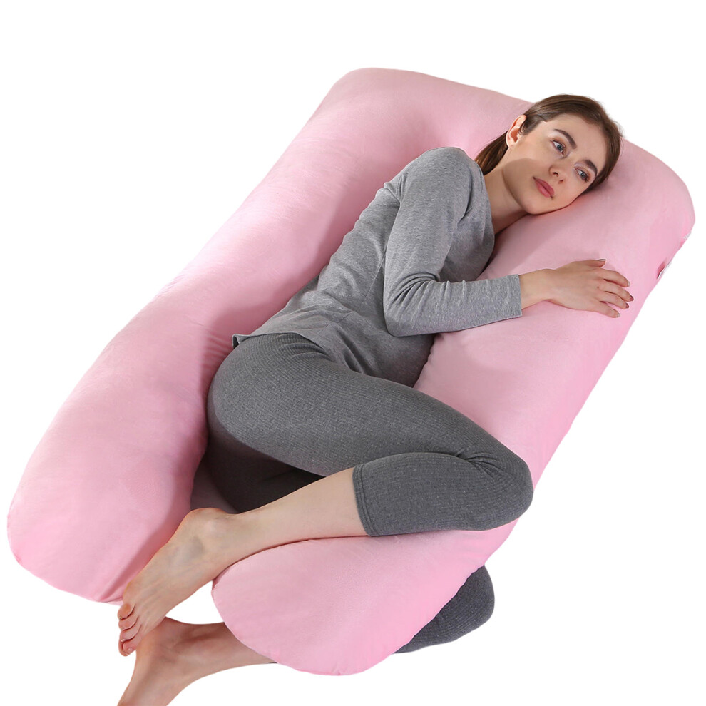 Nuliie Pregnancy Pillow for Sleeping, U Shaped Full Body Pillow Pregnancy Pillows, Maternity Pillow Support for Back, Hips, Legs for Pregnant Women, With Washable Velvet Cover (Pink)