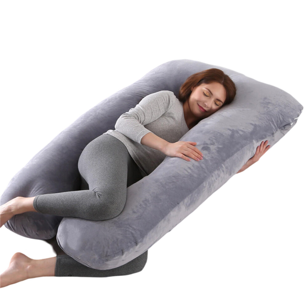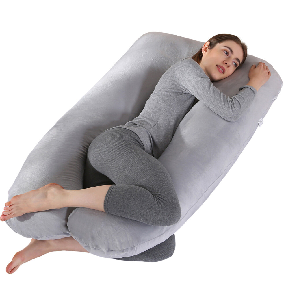 Nuliie Pregnancy Pillow for Sleeping, U Shaped Full Body Pillow Pregnancy Pillows, Maternity Pillow Support for Back, Hips, Legs for Pregnant Women, With Washable Velvet Cover (Grey)
