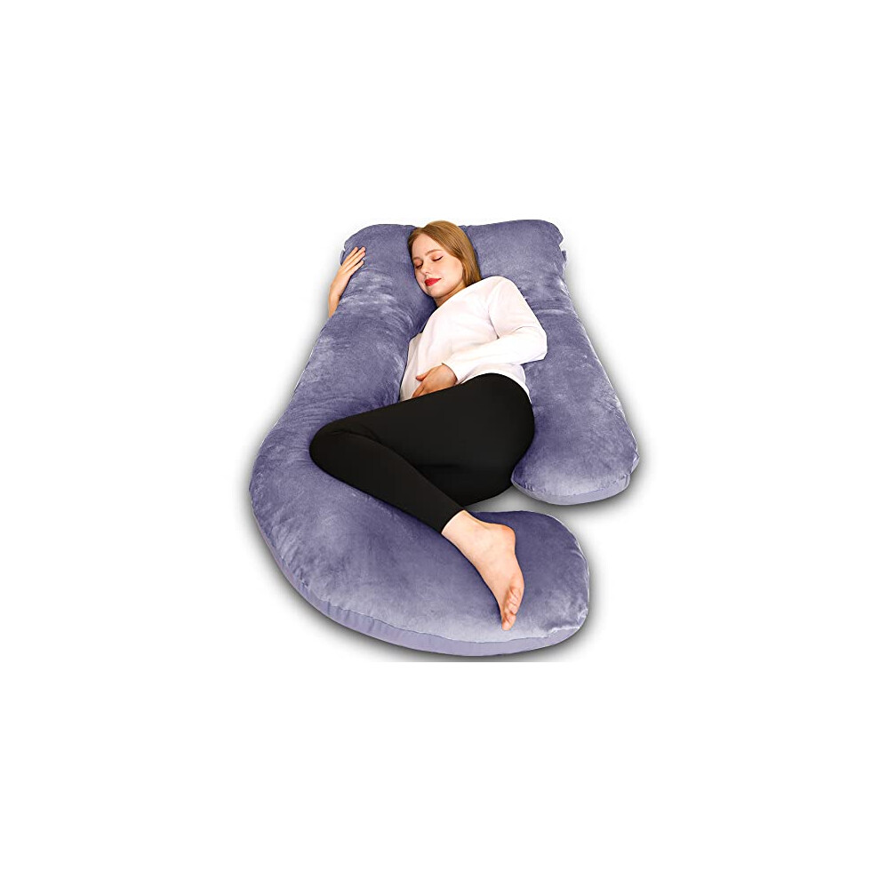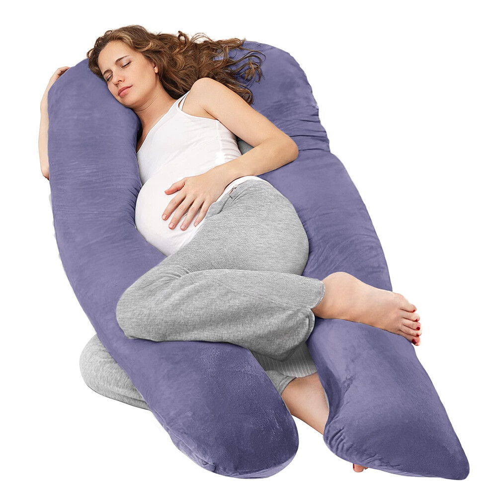 Nuliie Pregnancy Pillow for Sleeping, U Shaped Full Body Pillow Pregnancy Pillows, Maternity Pillow Support for Back, Hips, Legs for Pregnant Women, With Washable Velvet Cover (Purple)