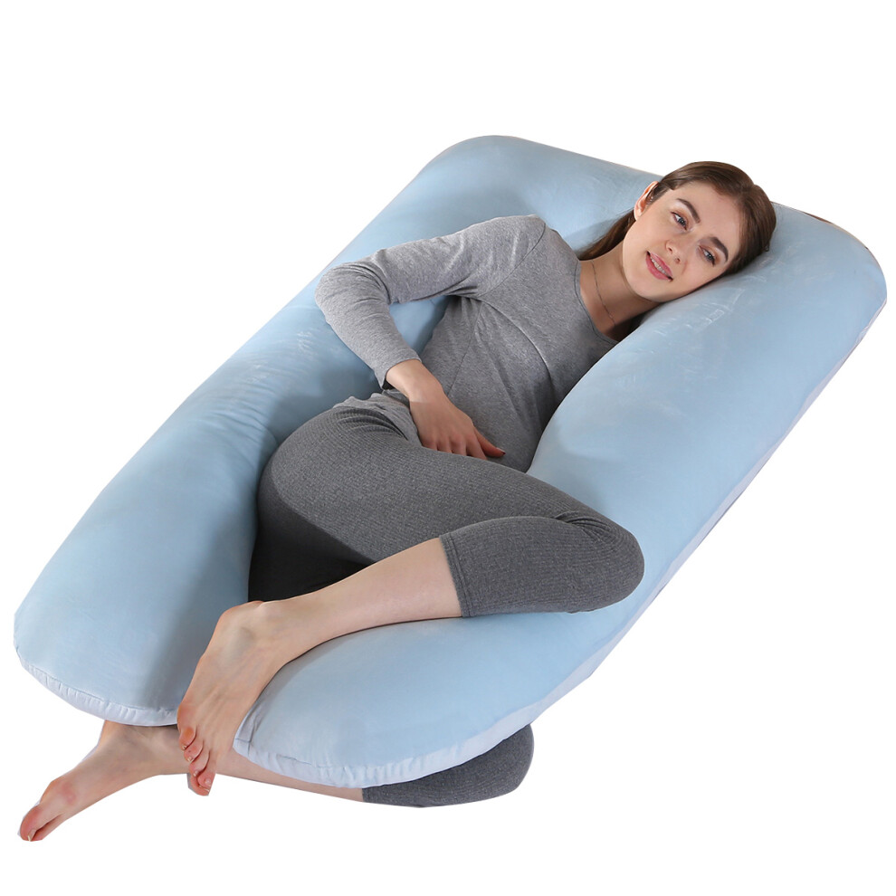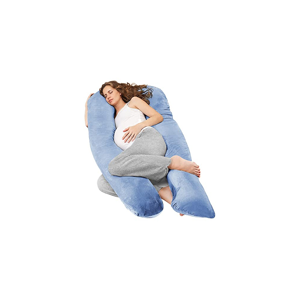 Nuliie Pregnancy Pillow for Sleeping, U Shaped Full Body Pillow Pregnancy Pillows, Maternity Pillow Support for Back, Hips, Legs for Pregnant Women, With Washable Velvet Cover (Blue)